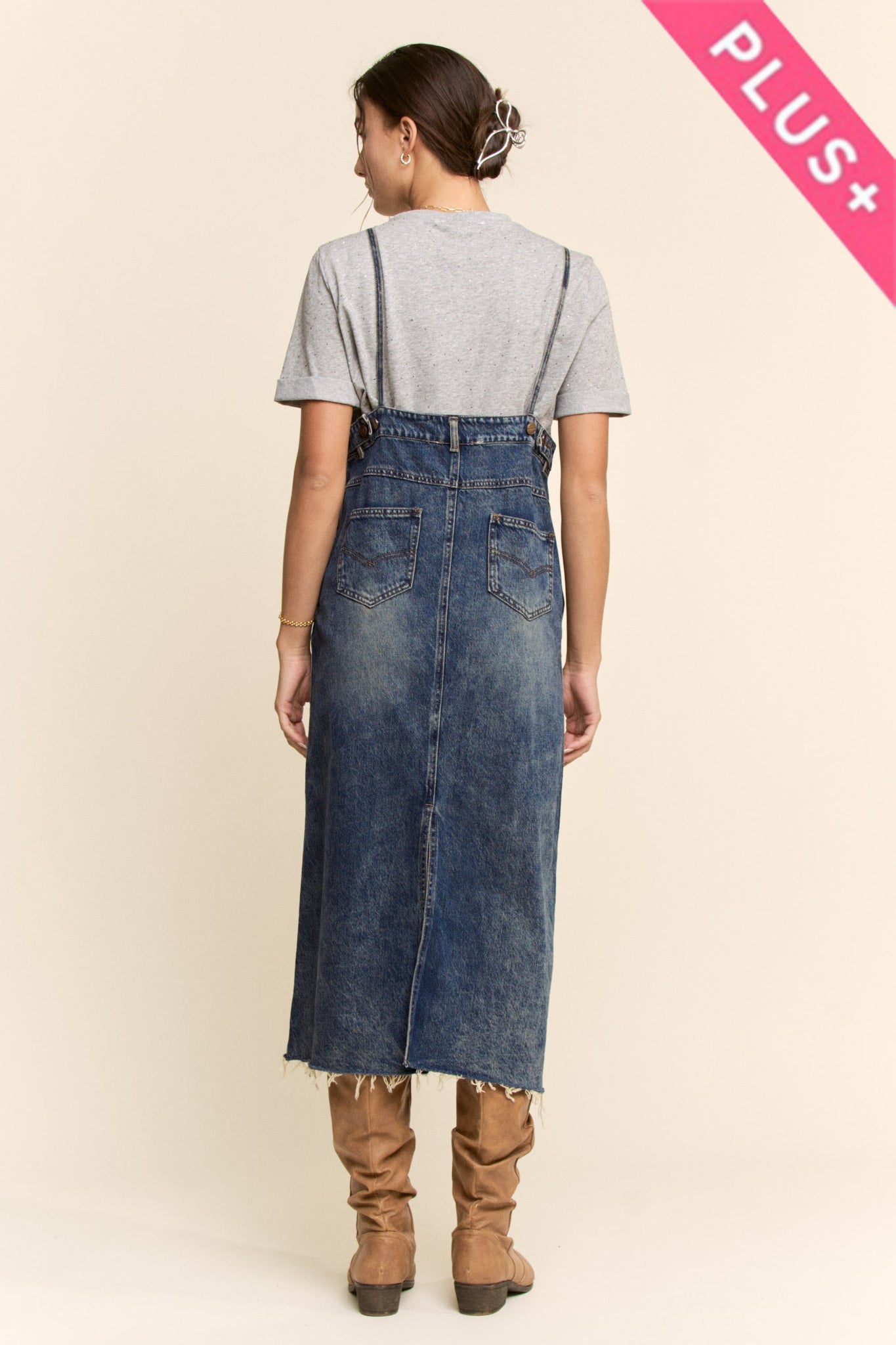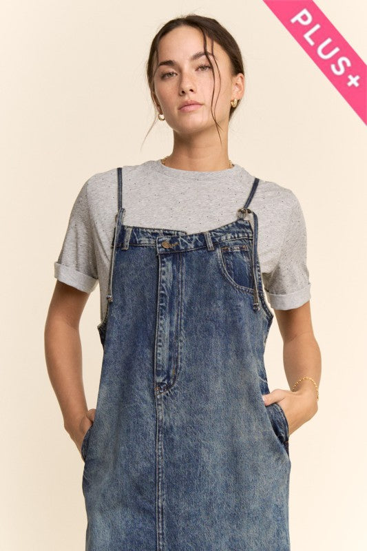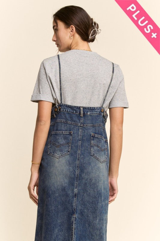 Crafted from soft, washed denim, this midi dress features a relaxed silhouette that allows for easy movement while still keeping a structured, flattering look. The adjustable shoulder straps provide a customizable fit, making it easy to layer over your favorite basics.