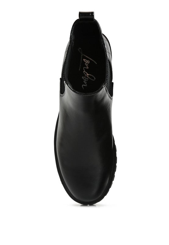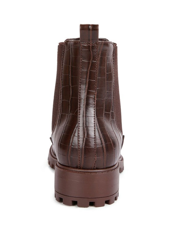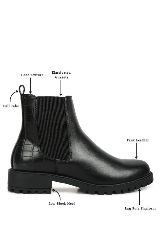 The chelsea boots are perfect for when you want to go the classic route but also want a bit of intrigue to your wardrobe. The croc texture back panel definitely is an elevated element that looks chic and stylish. The boots are easy to wear with pull tabs and comfortable with low heels and soft cushion insoles.