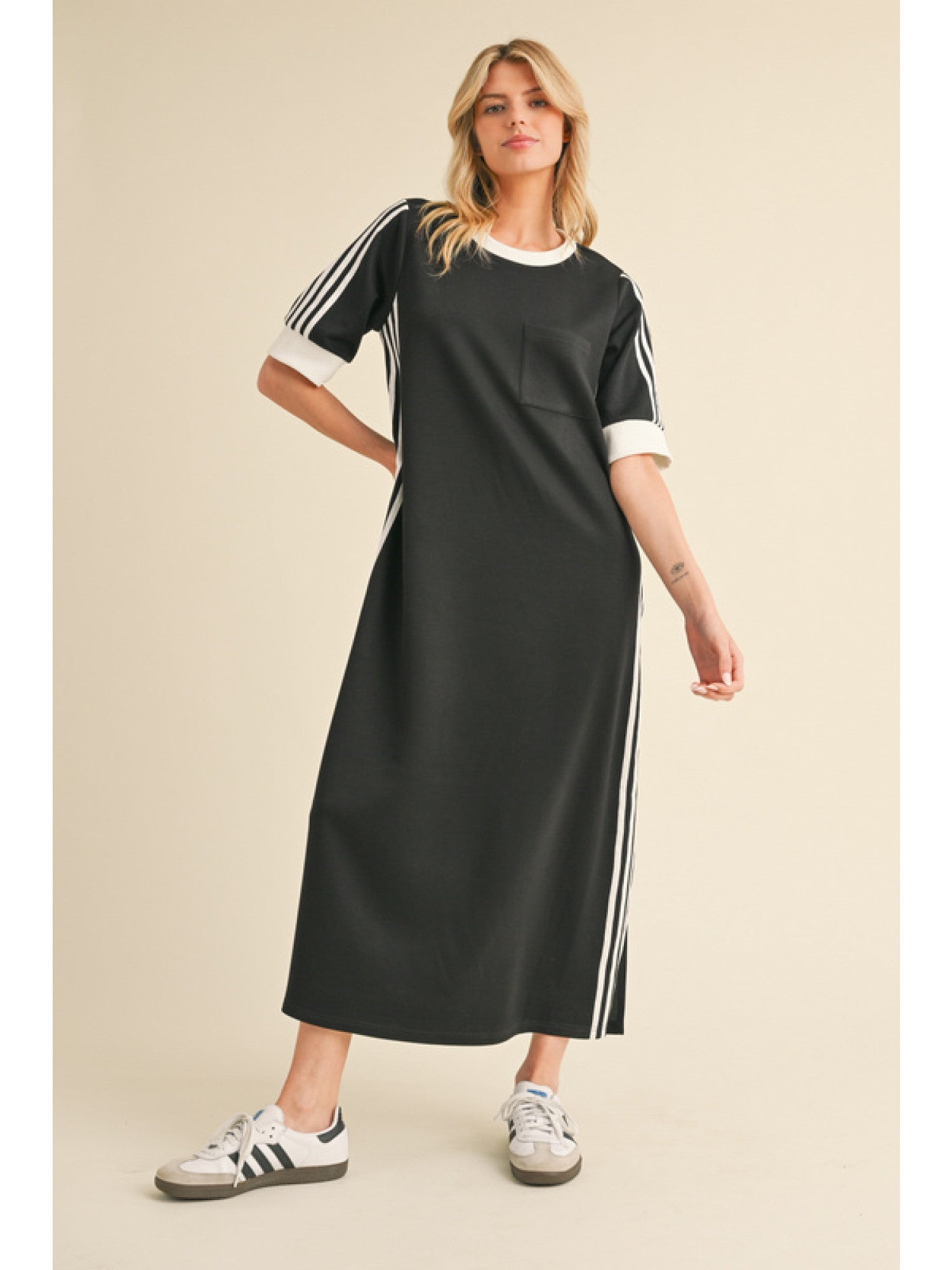 Sporty. Sleek. Effortless. The Varsity Luxe Dress is the perfect fusion of athletic wear and off-duty style. With its relaxed, roomy fit and signature striped side detail, this midi gives you the athleisure look you love without sacrificing comfort.